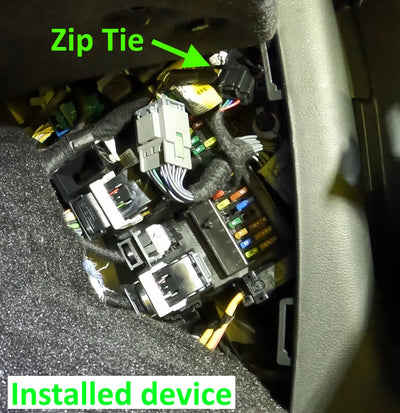 The device simply plugs into the vehicle in the passenger side footwell fuse box. Installation only takes a few minutes. See the images above.