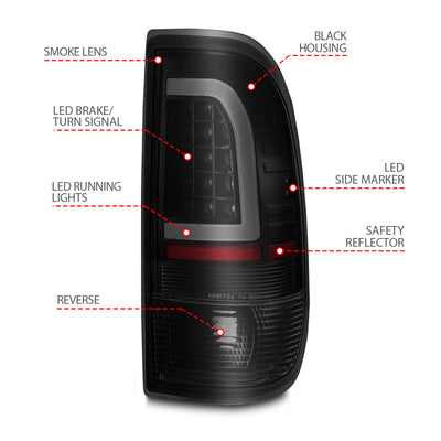ANZO 1997-2003 Ford F-150 LED Tail Lights w/ Light Bar Black Housing Smoke Lens