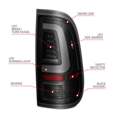 ANZO 2008-2016 Ford Super Duty LED Taillights Black Housing Smoke Lens