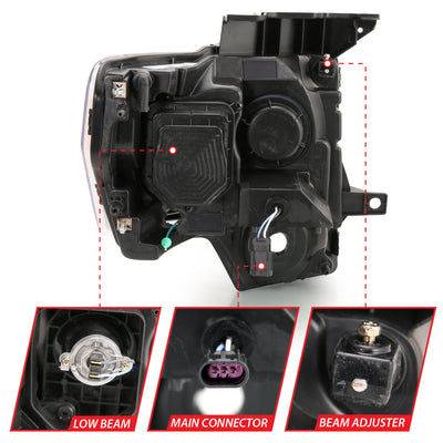 ANZO 2009-2014 Ford F-150 Projector Headlight Chrome Amber