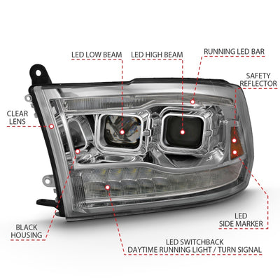 DODGE RAM 1500 09-18 /RAM 2500/3500 10-18 DUAL PROJECTOR SWITCHBACK HEADLIGHTS BLACK (FOR ALL MODELS)