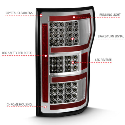 ANZO 2018-2019 Ford F-150 LED Taillight Chrome (Red Light Bar) (w/ Sequential)
