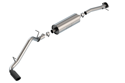 The BORLA? 140645BC is a Cat-Back? exhaust system for the Chevrolet Colorado and GMC Canyon trucks. The exhaust system is a direct bolt-on part for ease of installation. Specifically tuned for the 3.6L engine, our S-Type Cat-Back? delivers a sportier sound and a more exciting driving experience without any drone. It features a 4" T-304 stainless steel Black Chrome exhaust tip. Using BORLA? Stainless Steel Polish p# 21461 is NOT recommended with these black chrome tips. We suggest cleaning the tips with hot water and a microfiber cloth. Bright Chrome is also available (PN 140645). For vehicles with Crew Cab and Long Bed 140.5" Wheelbase, add Extenstion Pipe 60570.