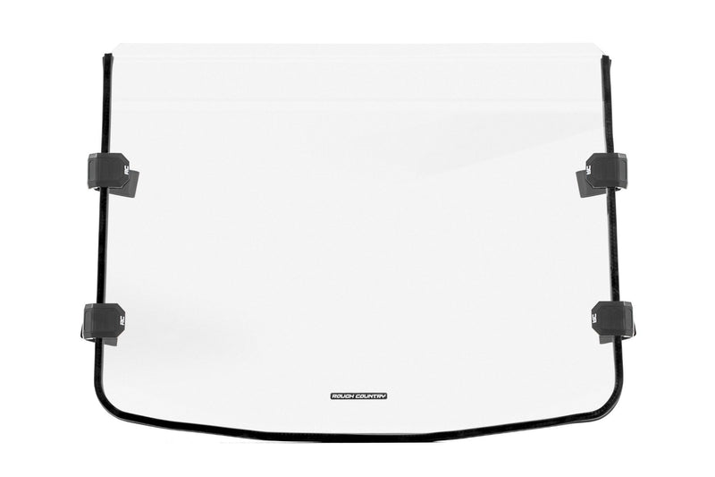 Added Protection and Comfortability: Protect the occupants of your Can-Am Commander from off-road hazards such as rocks, branches, and other debris with Rough Country's Scratch-Resistant Windshields. UTV Windshields offer a clear visual of the trail ahead and allow for a much more comfortable outing!High-Quality Polycarbonate Construction:Rough Country UTV windshields are constructed from thick polycarbonate material that is precision cut for a perfect fit. The polycarbonate material provides an ideal combination of clarity, flexibility, durability that outperforms glass, acrylic, and other windshield materials.Durable Scratch and UV Resistance. Each windshield is not only constructed from thick polycarbonate material but enhanced by a secondary AR2 hard-coating process. This process completely coats the windshield with a hardened, scratch-resistant barrier. This treatment also provides the additional benefit of UV protection.Easy Installation:With a simple strap-on installation process, installing a Rough Country windshield couldn't be easier. Within 15-30 minutes, you can be ready to hit the trails.Limited-Lifetime Replacement Warranty: Rough Country's Scratch-Resistant Windshields are backed with a limited lifetime replacement warranty towards manufacturer defects. As such, the product is protected from structural and workmanship damage after the date of purchase. With our industry-leading warranty give yourself peace of mind when using Rough Country's Suspension products!