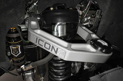 To accommodate the increased travel and lift height afforded by the ICON Coilovers, this Stage 5 kit comes with Billet Aluminum Upper Control Arms which provide on-vehicle caster and camber adjustability and feature our patented Delta Joint PRO, which allows for up to 90-degrees freedom of movement.