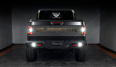 Designed to fit flush with the truck bed of the Jeep Gladiator, the new JT Flush Tail Lights from ORACLE Lighting offer new LED features and improved styling.This innovative design is a sleek tail light for Jeep Gladiators that wraps tightly around the truck. Protruding out significantly less than the factory tail lights, this low-profile design avoids damage while trail riding. Because of the nearly flush wrap-around design, the lighting can be visible from any rear angle, making it a unique solution for the Jeep. These Jeep Gladiator tail lights provide improved aesthetics and functional LED lighting features including high-powered reverse lights and signature perimeter lighting.In addition to standard features, the plug-and-play design features an enhanced reverse function and caters to the Jeep's optional cross-traffic sensor. The reverse light features 12 high-powered LEDs for optimal rear illumination. The cross-traffic sensor can be swapped directly over from the factory assembly and easily installs into the ORACLE Lighting tail lights for Jeep Gladiator. These flush-mount tail lights are compatible with base and LED packages.Gain sleek styling that compliments the original body lines and tons of innovative features. With the superior quality and durability that ORACLE Lighting is known for, these tail lights are the perfect upgrade for your Jeep Gladiator!