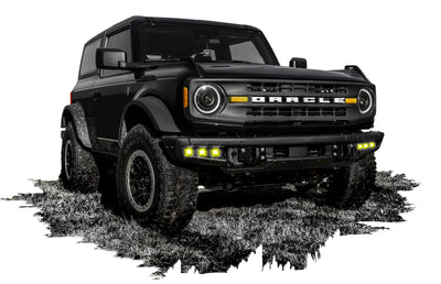 ORACLE Lighting has designed a LED triple fog light kit for the steel factory modular "mod" bumper on the 2021+ Ford Bronco. Quickly add functional forward-facing LED lighting to your vehicle to illuminate any adventure. The six high-powered emitters provide significant visibility through advanced optics with a 6000 raw Lumen output and a precise no-glare design that avoids blinding other drivers. The powder coat finish, blacked-out appearance, and IP68 waterproof rating offers a sleek look with superior durability to withstand any conditions. The simple bolt-on installation uses factory bolt locations and requires no drilling or modifications for the Bronco fog light kit. Typical installation time is under 30 minutes and can be successfully installed using common hand tools by even the most casual enthusiast. This complete kit includes 2 assembled steel housings, 6 LED Emitters, Wiring Harness, and all necessary hardware. Score first-class LED lighting that illuminates wherever your adventures take you with the ORACLE Lighting Ford Bronco Triple Fog Light Kit!