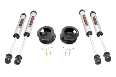 Rough Countrys durable coil spring spacers have been expertly redesigned to match the factory geometry of your truck, including the angle of the coil mounts and position of the rubber isolator, which perfectly indexes both springs to eliminate any chance of coil bowing. This kit also includes a pair of front V2 Shock Absorbers for better ride quality both on and off-road.