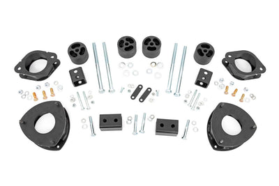 Each kit features a set of front and rear strut spacers, laser cut for a precise fit, and powder coated black to resist the elements. Rough Countrys 2in Leveling Kit features an easy installation process with no need for complicated strut disassembly. Includes a Lifetime Replacement Guarantee!