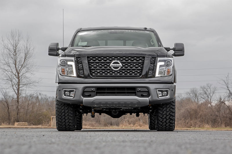 Rough Countrys 3in Bolt-On Kit offers easy installation and aggressive good looks at an incredible value. Take your truck to new heights with this excellent option for standard Nissan Titan pickups. This kit features a set of high-quality, tubular Upper Control Arms designed to make alignment adjustments easier and Clevite rubber bushings for enhanced durability.