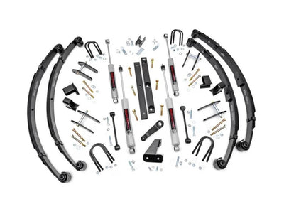 Looking for uncompromised performance on and off-road? The 4.5-inch Military Wrap Leaf Spring Suspension Lift Kit for Jeep YJ was engineered by Rough Countrys Research and Development Team to give the perfect blend of off-road performance and smooth highway ride.