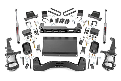 Our Fabricated Rear Blocks offer considerably more strength than their cast iron counterparts, and were specifically engineered by Rough Country to prevent against axle-wrap.A set of Rough Countrys premium N3 shocks are also included in this kit, featuring a large diameter body with a chrome-hardened piston rod and long-lasting polyurethane bushings.Best of all, Rough Countrys Ford F-150 Lift Kit is backed by our Lifetime Replacement Warranty.