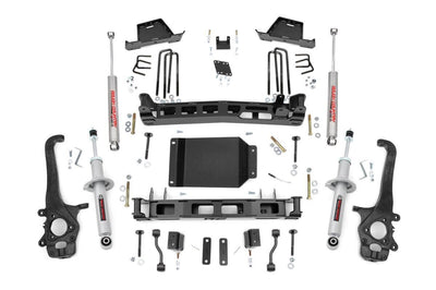 Release your Nissan Titans inner beast with Rough Countrys 6-inch Suspension Lift! This durable, all-inclusive lift kit comes with everything you need for smooth off-road performance and aggressive good looks. Featuring beefy lifted knuckles and unrelenting front and rear crossmembers, your Titan is ready for the road less traveled.