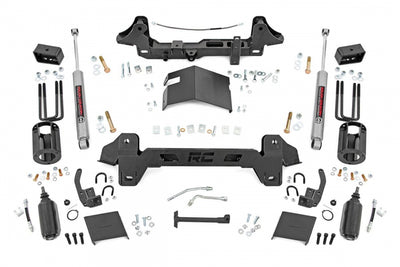 This kit features a durable front and rear crossmember, a fortified skid plate, and all of the appropriate brackets and extensions to preserve your power steering and promote the proper geometric angles after lifting. Improve your on and off-road ride quality with Rough Countrys premium N3 shocks, included in this kit!
