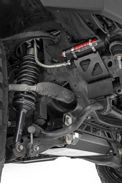 This kit includes Rough Countrys Adjustable Reservoir Vertex Shocks for the ultimate balance in highway ride quality and off-road vibration dampening. Includes Rough Countrys Lifetime Replacement Guarantee.