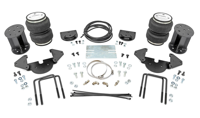 Heavy-duty Construction. Rough Countrys Rear Air Spring Kit features two RC branded high-quality double convoluted airbags complemented with DOT-approved airlines. Whether you plan on towing or hauling in the not-so-distant future Rough Countrys Air Spring kit is the must-have accessory to ensure that your trailer is level reducing the weight off of the tongue of your trailer.