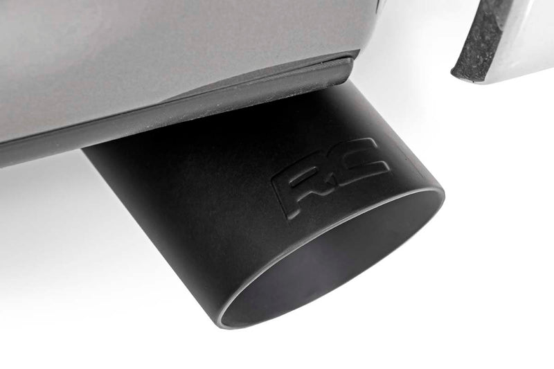 Give your truck the finishing touch with Rough Countrys Black Exhaust Tip w/ RC logo! This stylish yet durable exhaust tip gives your truck an aggressive look with an easy, 100 percent bolt-on installation procedure that takes no-time flat! Whether youre wanting to ditch the chrome for a blacked out look or just want a unique, easy upgrade, Rough Countrys Flat Black Exhaust Tip is the perfect solution for your truck.