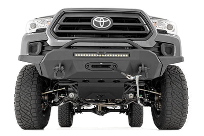 Rough Country Front Bumper High Clearance Hybrid with 12000 Lb Pro Series Winch Synthetic Rope and 20 LED Light Bar 16-23 Toyota Tacoma