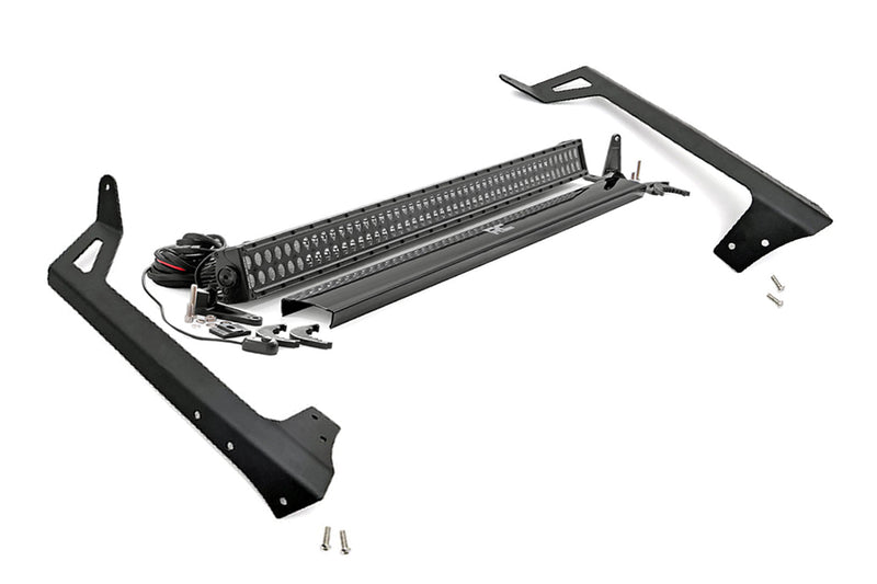 Rough Country Jeep 50-Inch Straight LED Light Bar Upper Windshield Kit w/ 50 Inch Black Series LED Light 07-18 Wrangler JK