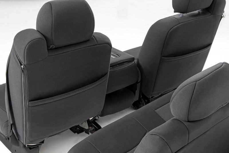 Protect your Chevys seats from water, mud, and anything you can throw at it with Rough Countrys front and rear Neoprene Seat Covers. These easy-to install covers fit snugly over your trucks seats to protect your interior from the elements while blending in perfectly.