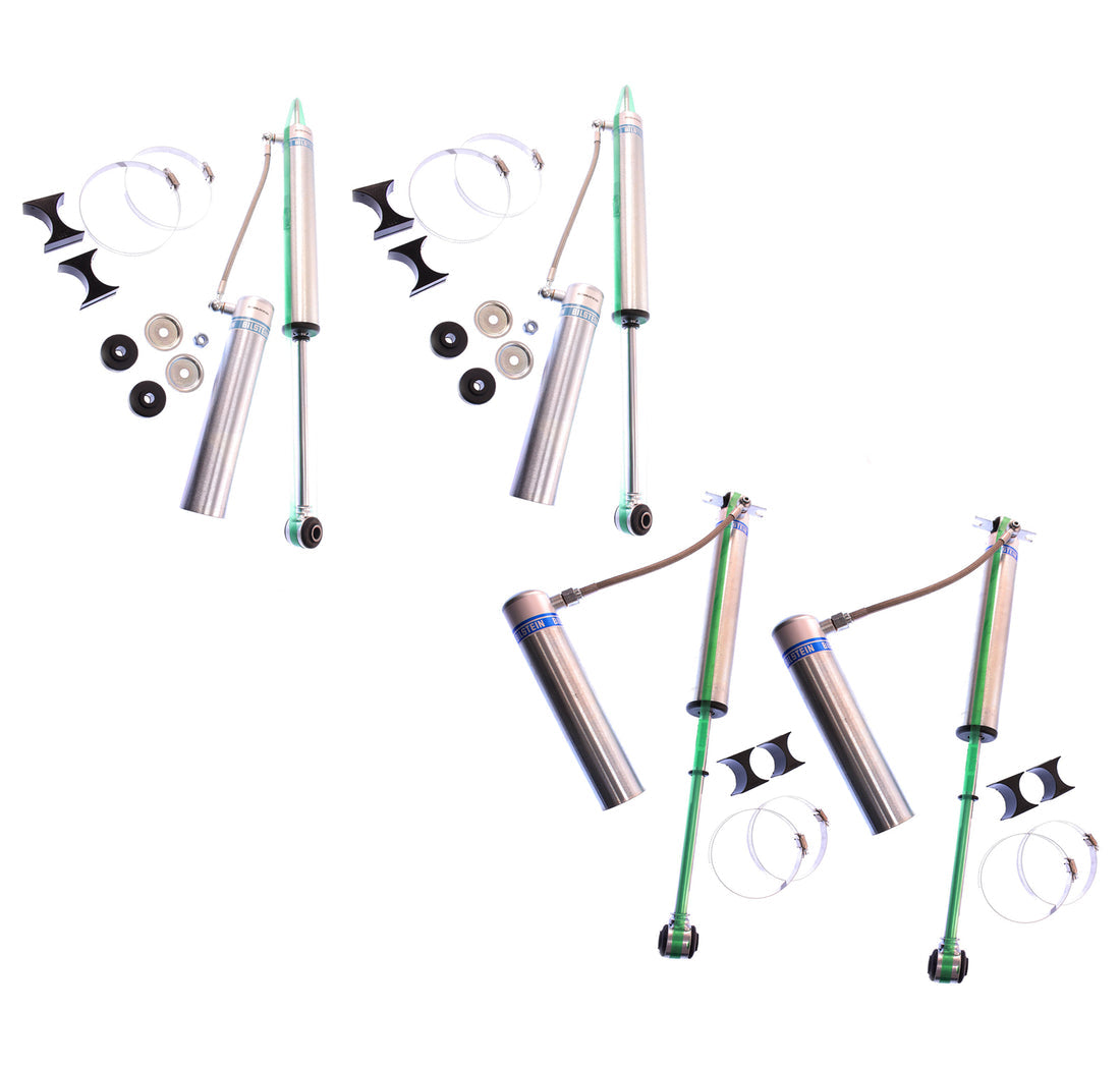 Bilstein B8 5160 remote reservoir shock absorbers are designed as a direct fit solution for lifted trucks and SUV's. The remote reservoir will offer increased cooling capacity and wheel travel to optimize overall performance compared to a traditional shock absorber. These shock absorbers feature a monotube design for consistent fade free performance and utilize velocity sensitive digressive valve settings which are tuned for each specific application. Each shock absorber is fitted with a unique 360 degree swivel banjo hose fitting, providing a clean, low profile installation. B8 5160 remote reservoir shock absorbers will increase overall durability of your vehicle allowing you to conquer the harshest of off-road environments.