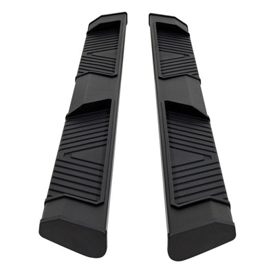 AT6 Running Boards are designed for full size trucks and feature a 5-inch wide step area with integrated indented pads for solid footing. Built with clean, rounded end caps and bracket covers for an OEM?style appearance, they offer a refined yet rugged look. Two finish options are available, textured black powder-coated extruded aluminum, backed by a 3?year limited warranty, or bright finish polished stainless steel with a limited lifetime warranty. These boards are lightweight but structurally durable, designed to minimize added weight with the strength for the toughest jobs. The footboard and pads are ergonomically placed for comfort and maximum traction. Bracket covers are used to conceal mounting hardware and help preserve that clean factory look. The AT6 models are vehicle-specific fit and include hardware to bolt on the boards with no drilling required. Installation takes about 1.5hrs, and depending on the height of the truck, should not require a lift. The aluminum construction offers excellent weather resistance with proper care and maintenance, but for harsh road conditions or regions where salt is used on the roadways during winter, choose stainless steel. Replace your factory running boards with AT6. They are a sleek, solidly built option with stylish design, ample stepping area, and finish choices for a custom look.