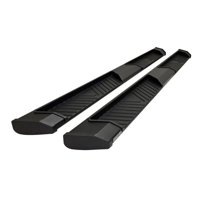 AT6 Running Boards are designed for full size trucks and feature a 5-inch wide step area with integrated indented pads for solid footing. Built with clean, rounded end caps and bracket covers for an OEM?style appearance, they offer a refined yet rugged look. Two finish options are available, textured black powder-coated extruded aluminum, backed by a 3?year limited warranty, or bright finish polished stainless steel with a limited lifetime warranty. These boards are lightweight but structurally durable, designed to minimize added weight with the strength for the toughest jobs. The footboard and pads are ergonomically placed for comfort and maximum traction. Bracket covers are used to conceal mounting hardware and help preserve that clean factory look. The AT6 models are vehicle-specific fit and include hardware to bolt on the boards with no drilling required. Installation takes about 1.5hrs, and depending on the height of the truck, should not require a lift. The aluminum construction offers excellent weather resistance with proper care and maintenance, but for harsh road conditions or regions where salt is used on the roadways during winter, choose stainless steel. Replace your factory running boards with AT6. They are a sleek, solidly built option with stylish design, ample stepping area, and finish choices for a custom look.